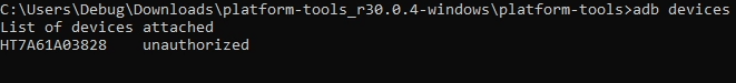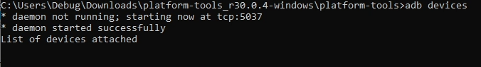 adb devicesagain and make sure you see the correct output as shown below.Correct command prompt output